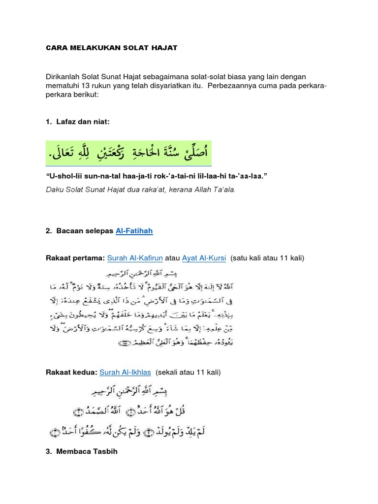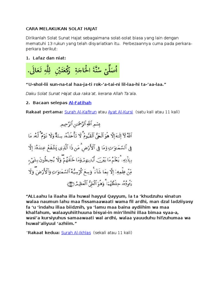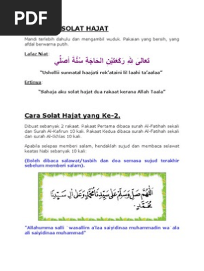 Tatacara Solat Hajat Solat Dhuha from online.anyflip.com Shalat dua rakaat dulu baru minta hajat, baca niat ushalli sunah hajat (niatkan hajatnya), setelah shalat dua rakaat, baru mohon kepada allah. Aku berniat sholat hajat sunah hajat dua rakaat karena allah ta'ala. tata cara sholat hajat. Cara solat hajat adalah ia boleh didirikan sehingga 12 rakaat dan paling minimum adalah 2 rakaat. Semoga dengan adanya tuntunan ini dapat mempermudah anda untuk selalu menunaikan sholat sunnah hajat 2 rakaat ini dan juga bermanfaat untuk menambah khazanah keilmuan anda. Baiknya setelah melakukan sholat maka dilanjutkan dengan berdoa meminta dan memohon kepada allah swt. Berikut tata caranya yang dirangkum dari berbagai sumber. Waktu sholat hajat bisa kapan saja, namun dianjurkan pada sepertiga malam. Cara solat sunat hajat yang mudah & ringkas.