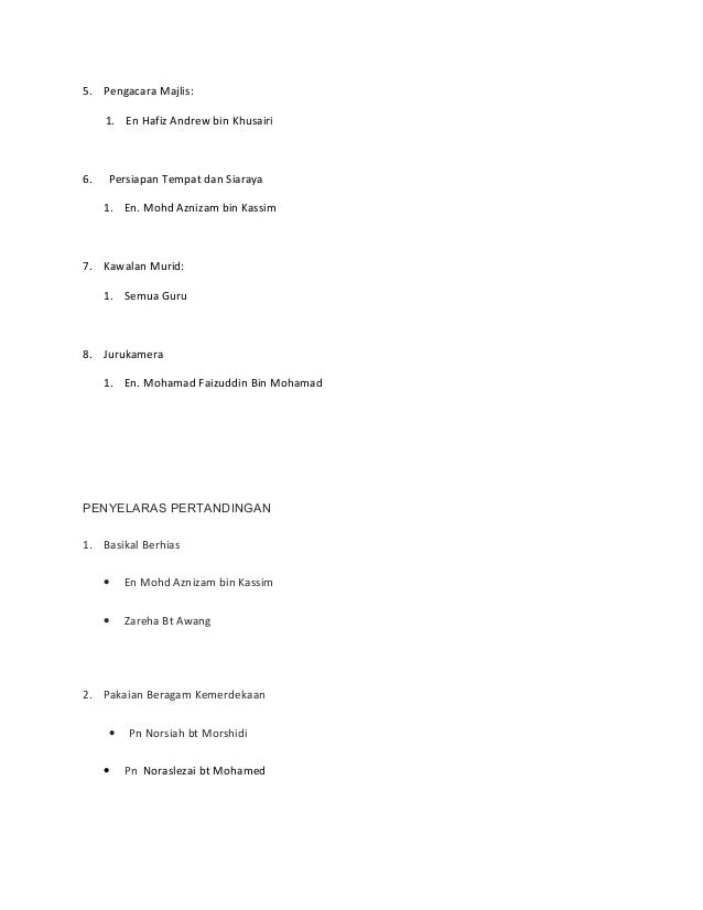 Diharapkan agar program bulan kemerdekaan bagi tahun 2014 ini dapat dijalankan dengan lancar dan mendapat kerjasama daripada semua pihak serta mencapai objektif yang telah digariskan. Kertas kerja sambutan bulan kemerdekaan. Panitia sejarah dengan kerjasama panitia pendidikan sivik dan kewarganegaraan dan kajian tempatan akan mengadakan aktiviti bulan patriotisme bermula 18 ogos hingga 26 september 2014 bagi mengisi takwin sk bangsar nagi tahun 2014. Bersama ini kami kumpulkan koleksi buku program, brosur dan pemplate bulan kemerdekaan untuk kegunaan sekolah. Kertas kerja sambutan bulan kemerdekaan sk simpang tiga 2018 pendahuluan unit kokurikulum sk simpang tiga dengan kerjasama panitia sejarah sk simpang tiga akan mengadakan aktiviti bulan kemerdekaan bagi mengisi takwim 2018 sk simpang tiga. Hari tersebut merupakan hari kebesaran negara yang perlu disambut. Janji ditepati 17 julai 14 september 2010 skpbp(1) 1.0 pengenalan hari kemerdekaan negara yang di sambut setiap tahun mempunyai kebaikan dan kepentingannya yang tersendiri. Jawatankuasa kerja sambutan bulan kemerdekaan 2018 peringkat sekolah bil. Contoh kertas kerja program bulan kemerdekaan; Muat turun kertas kerja, koleksi buku program, brosur & pemplat bulan kemerdekaan. Teknologi maklumat sekolah rendah tutor el: 4 bidang utama aktiviti rakan pembaca Kertas kerja sambutan bulan kemanusiaan dan kemerdekaan sudah menjadi budaya di setiap sekolah apabila tibanya bulan ogos, pastinya rancangan dan program berkaitan sambutan kemerdekaan negara akan diadakan bagi memupuk semangat patriotik dan sifat cintakan negara dalam kalangan diri murid khususnya dan warga sekolah amnya.